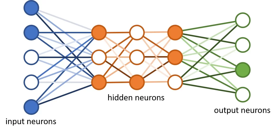 Algoritmos de deep learning possuem arquitetura em camadas, ela pode variar conforme o problema que você precisa solucionar, mas basicamente existem 3 camadas principais no deep learning.